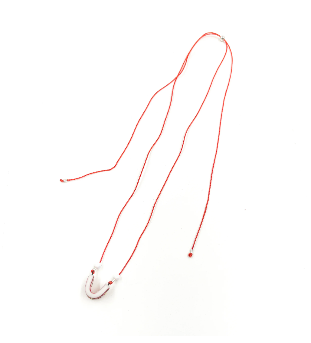 April Felipe Red Floral Bent Oval with Opals on Red Cord Necklace