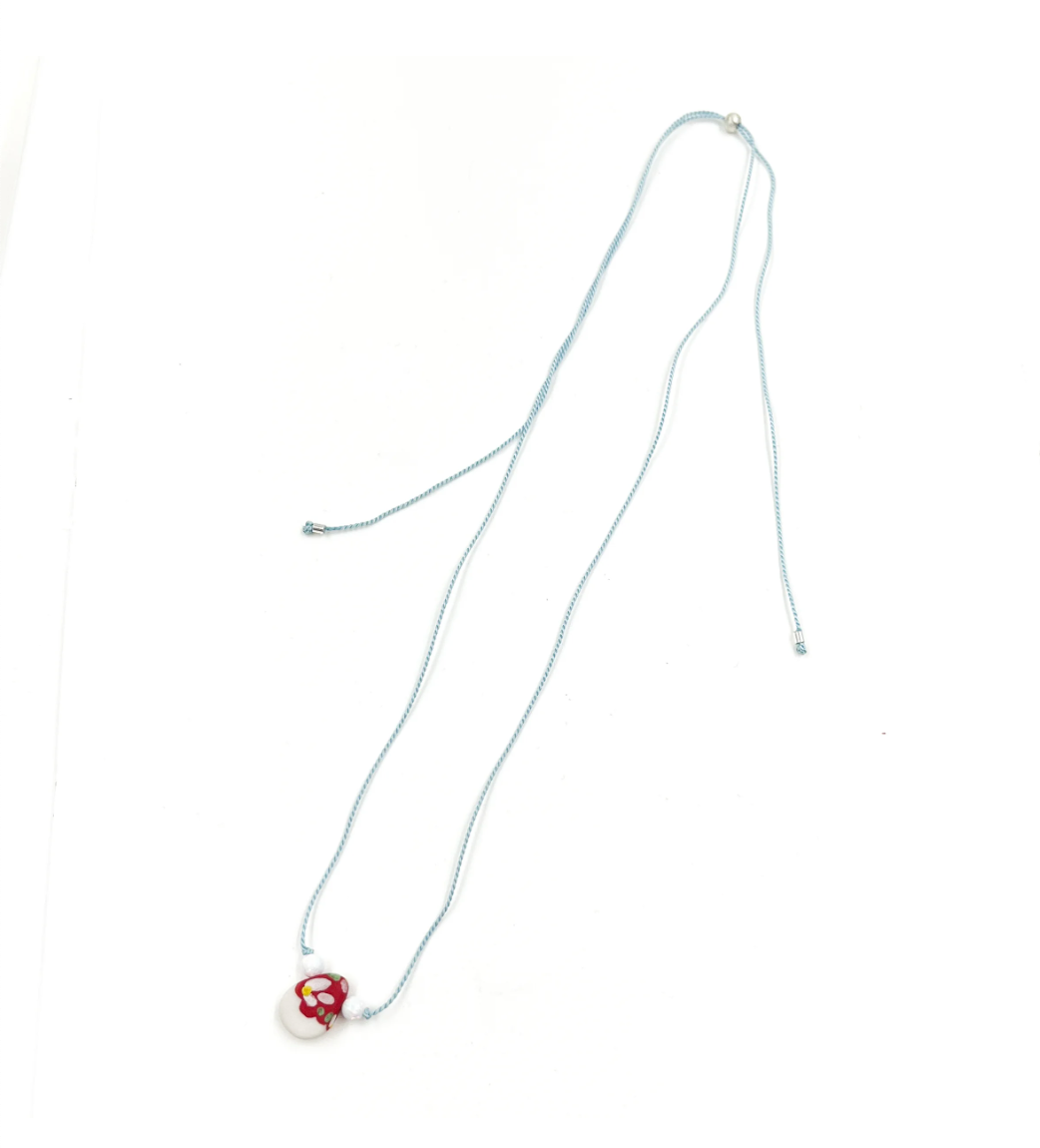 April Felipe Red Floral Tear Drop with Opal on Blue Cord Necklace