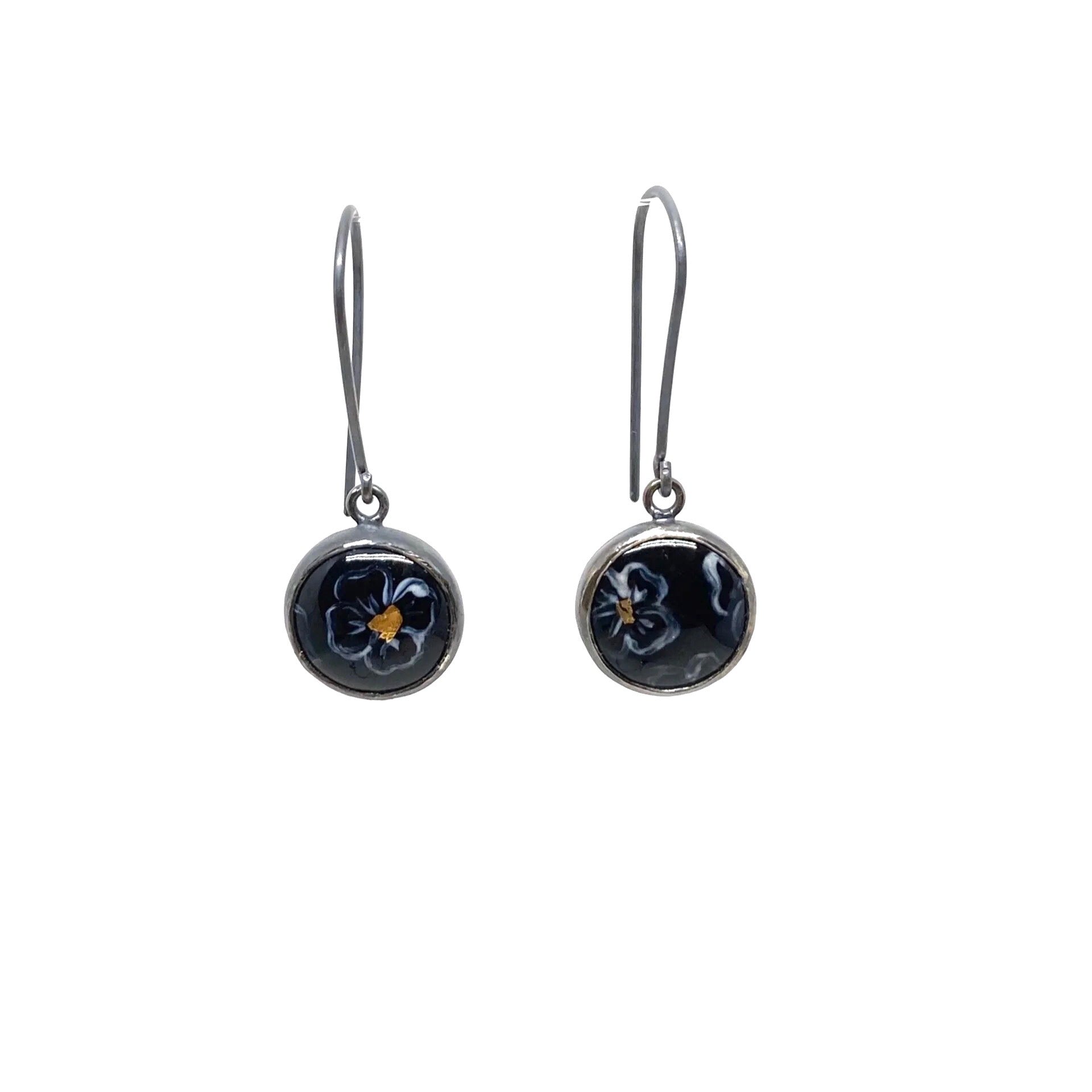 Nicolette Absil Floral Black Enamel Button Dangle Earrings