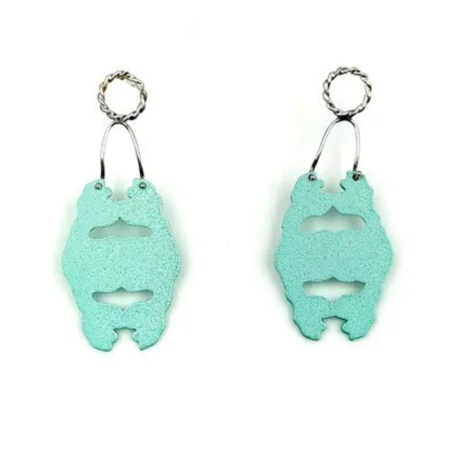 sterling silver ear wire and ear nuts, hand cut aluminum, powder coat.