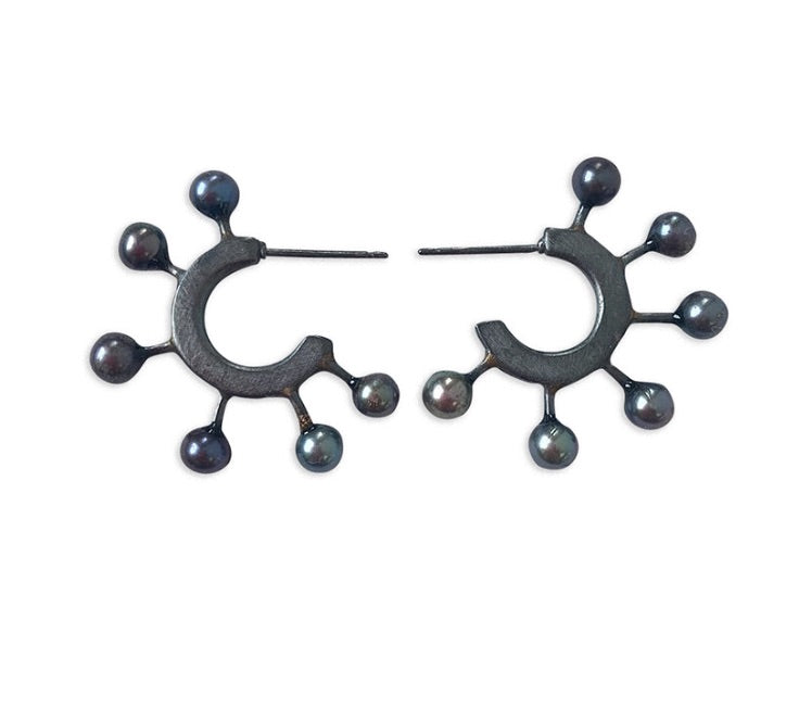 Sarah Holden Black & Oxidized Silver Pearly Hoop Earrings
