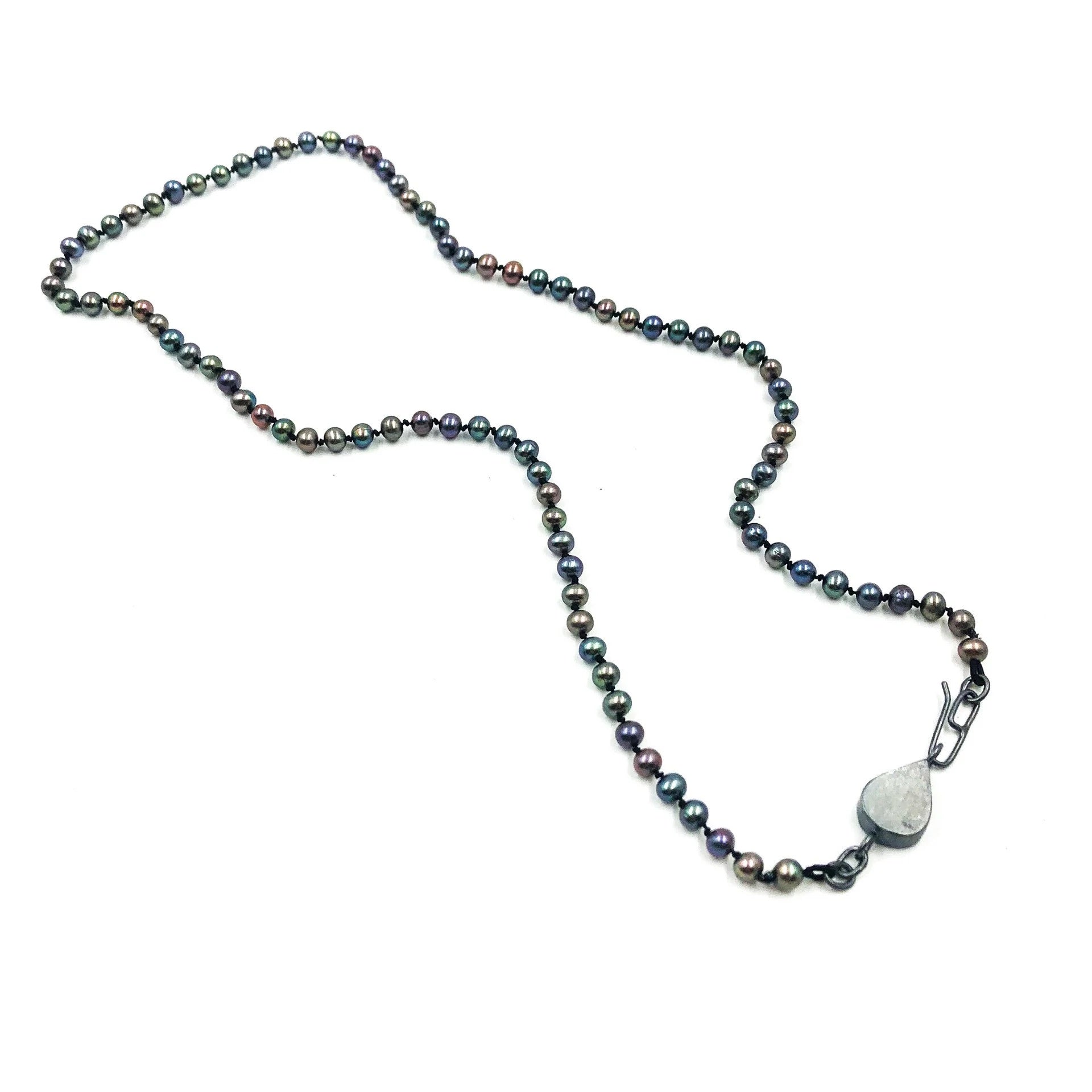 Freshwater pearls strung on silk, Handmade oxidized sterling silver clasp can be worn in front or back