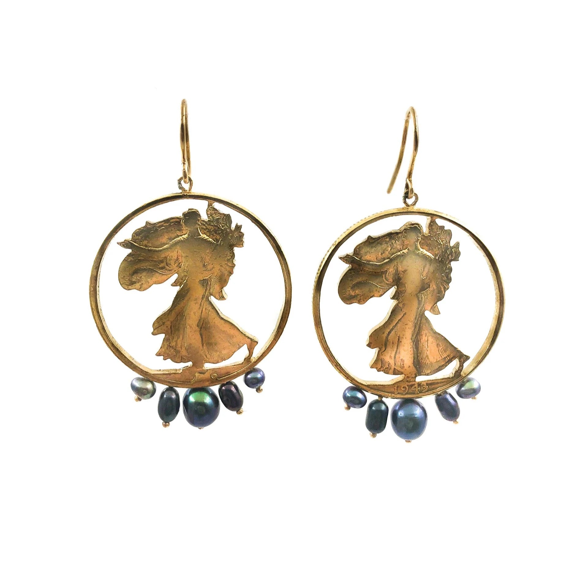 Stacey Lee Webber Walking Liberty Pearl Earrings