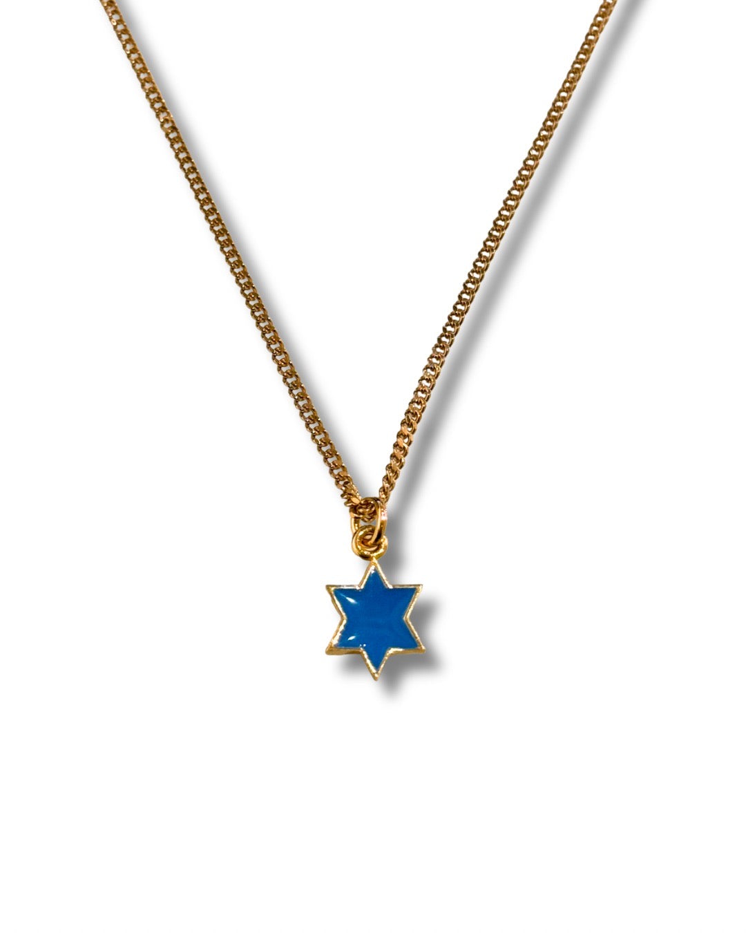 Gold blue enamel Star of David necklace