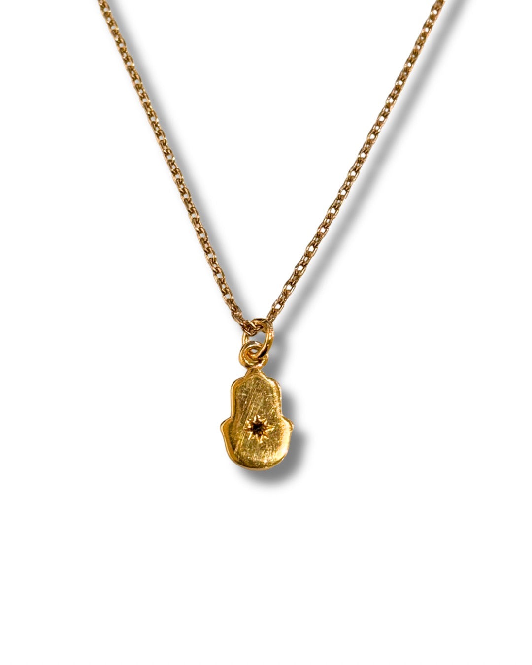 Gold Hamsa hand necklace with black diamond detail
