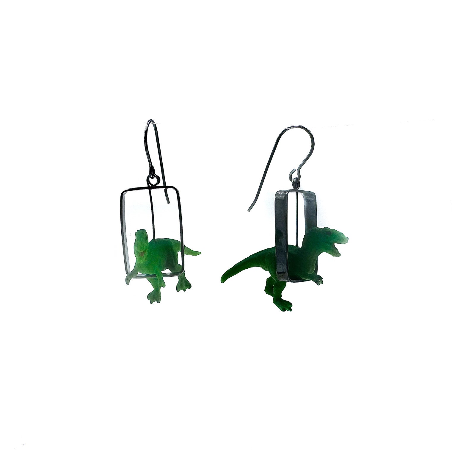 Kristin Lora Oxidized Silver T-Rex Earrings