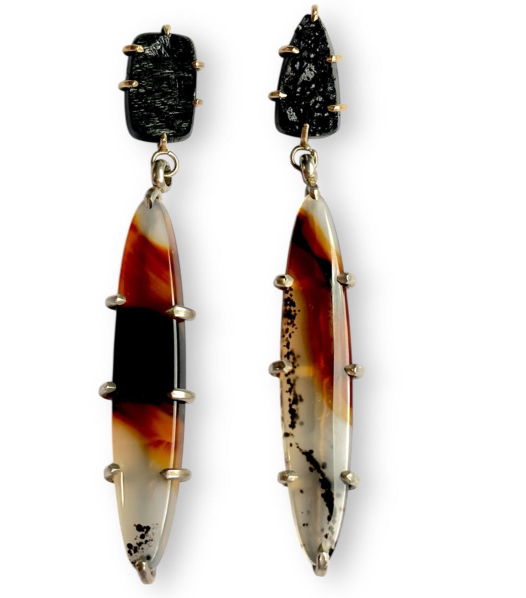 Montana agate, black tourmaline, 14k gold, Sterling Silver