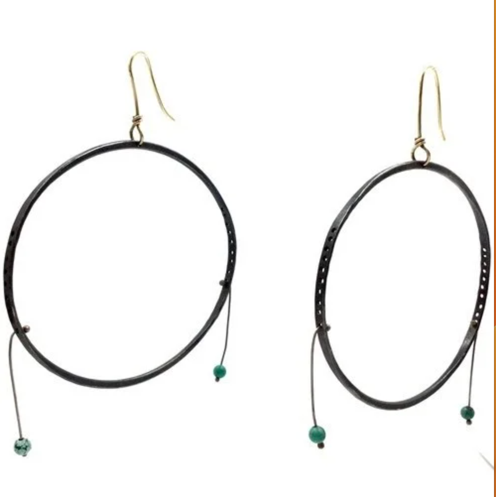 Gabrielle Gould Forged Hoop Earrings with Turquoise Drop Earrings