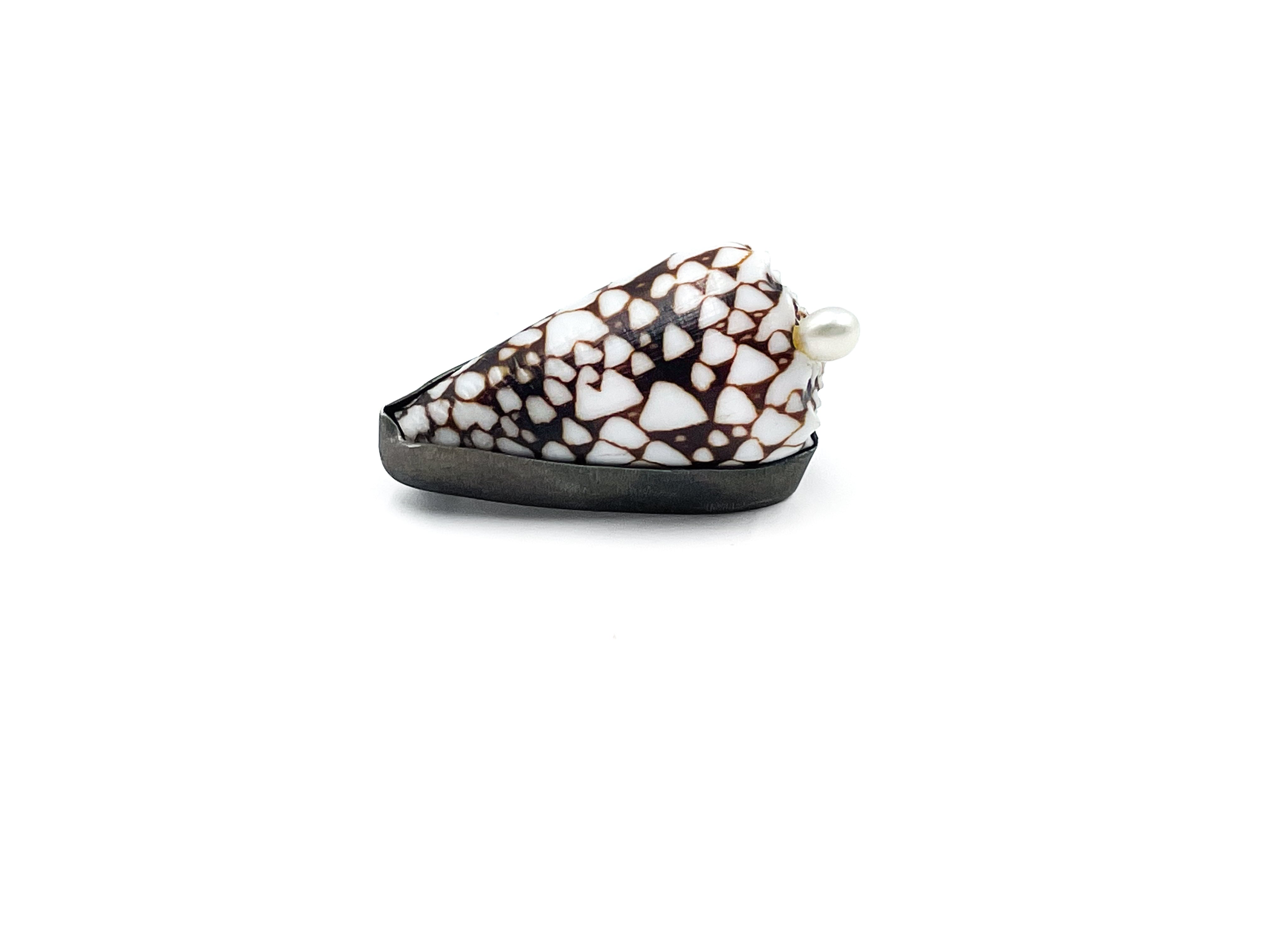 Cone Shell, Oxidized Sterling Silver, Steel Pin and Catch, Pearl