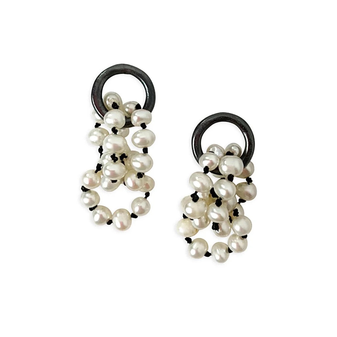 Sarah Holden Oxidized Silver White Pearl Bubble Drop Earrings
