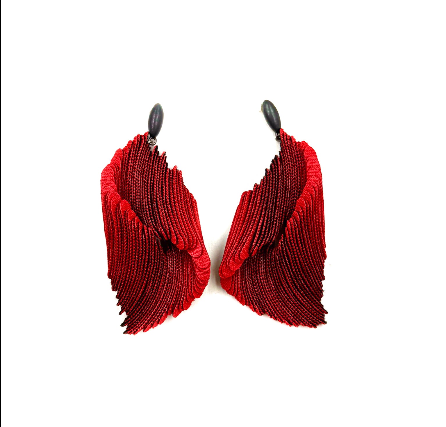 Silver threaded red and black velcro earrings, made in South Korea